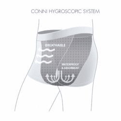 Slim, fashionable and discreet, they are suitable for light incontinence and excessive perspiration, providing confidence for everyday life, sports and post surgery use. Lightweight and easy to use, machine washable and tumble dryer safe. Conni underwear can be reused countless times. A cost effective and environmentelly sustainable alternative to disposable products.