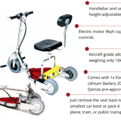 · Various Levels of Breakdown and Folding for Transport · Removeable Battery for Travel · Underseat Storage |